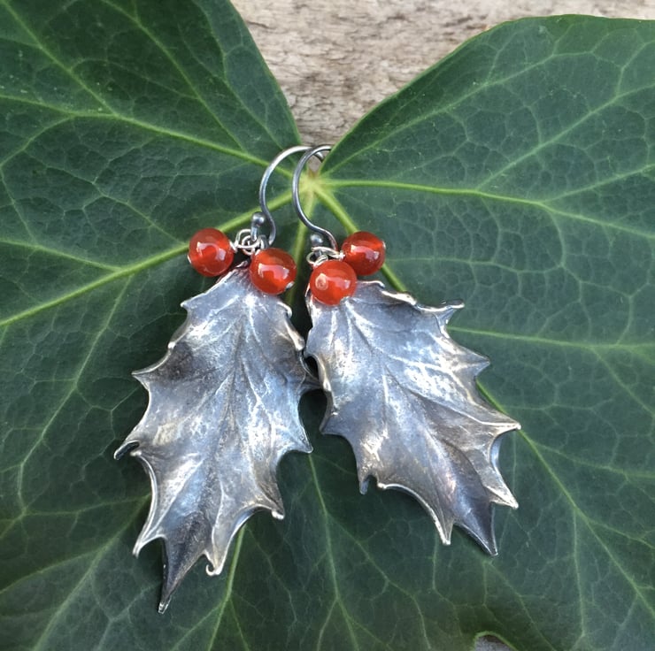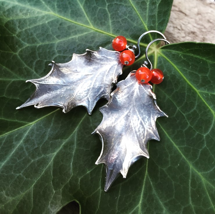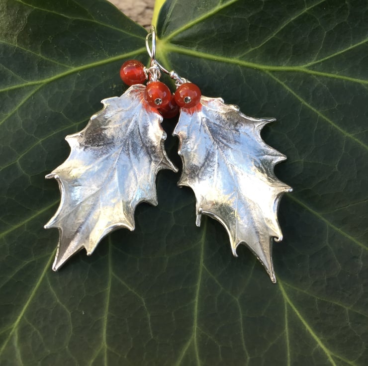 These have been cast from real holly leaves into solid silver so are exquisitely realistic.