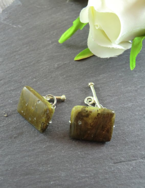 This is an unusual pair of brown fossil jasper cufflinks. They are created using real fossil jasper gemstones, and silver plated e-coated copper. A great accessory for everyday use or for that special event. The nature of this type of Jasper means that every gemstone is unique. A wonderful gift for those who love history.
