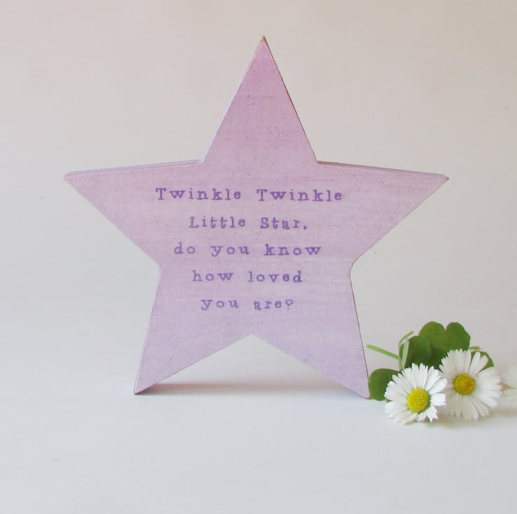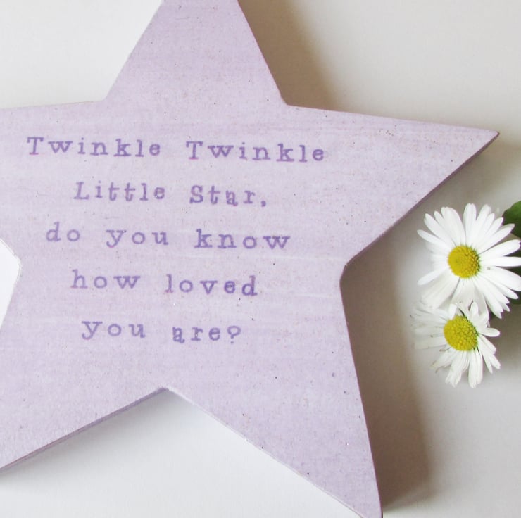 MDF with a Lilac decoupage front with the Twinkle Twinkle verse on it