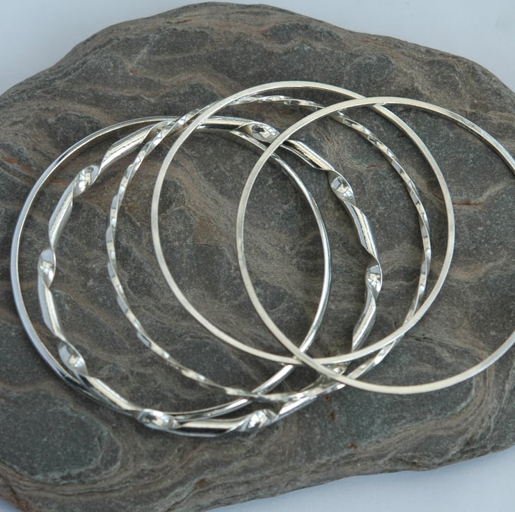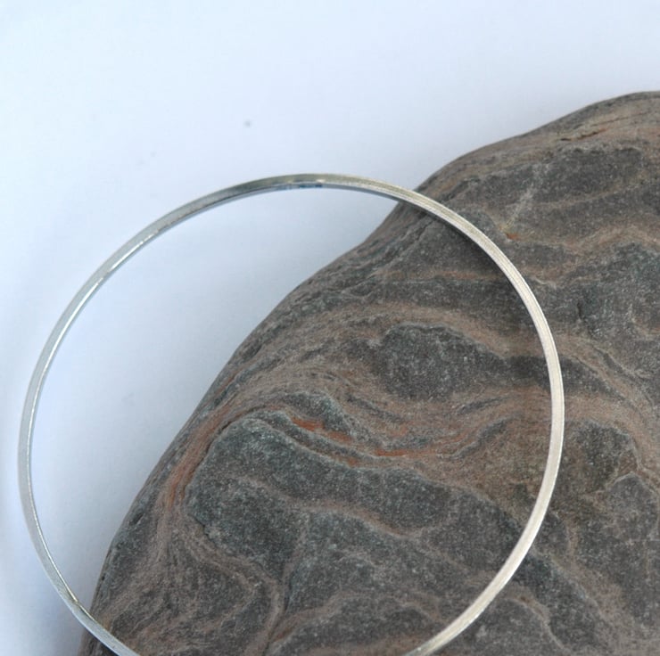 This lovely sterling silver bangle is made from 1.5mm square profile silver wire - ideal for stacking or wearing on its own. It is a medium size with an internal diameter of 6.5cm and is light and comfortable to wear. It has been hallmarked by the London Assay Office and polished to a high shine.