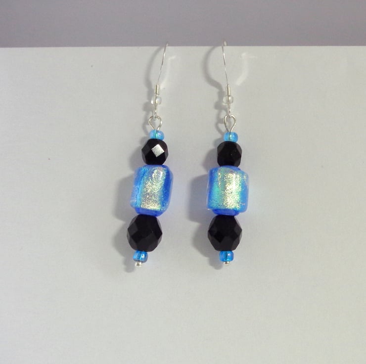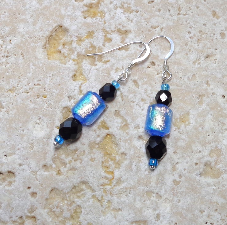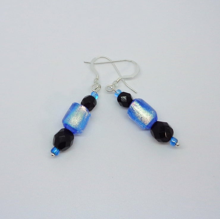 Dichroic glass is known for its vivid colours and those same lovely colours are often difficult to truly represent in photographs. These earrings are really pretty but have been hard to capture on camera. The blue is less vivid than shown, softer & more silvery. Fortunately, whatever the picture – the real thing very seldom disappoints!