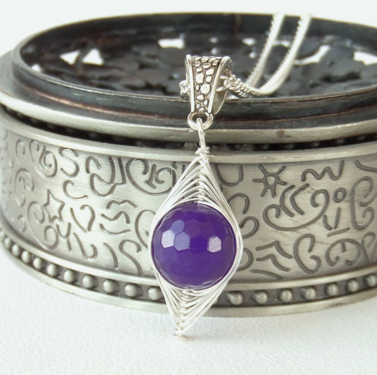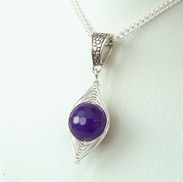 A lovely handmade necklace, with a wire wrapped purple malayan jade gemstone as the focus.