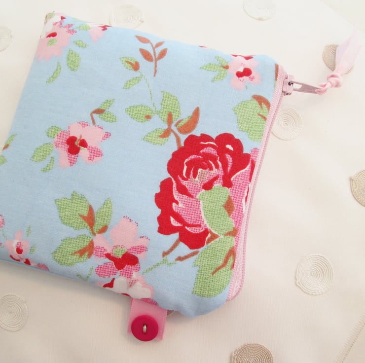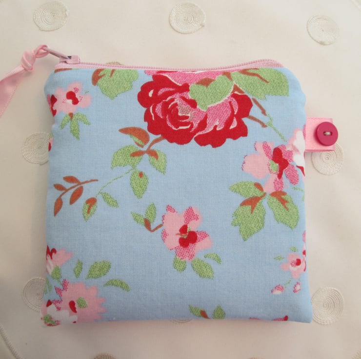 Pretty little flowery printed fabric coin purse, perfect for your coins, notes and cards.