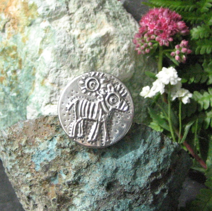 Zebra brooch or badge handmade in modern lead-free pewter. Measuring 32mm in diameter, this little brooch has a 25mm pin with safety catch on the reverse. Comes gift boxed (may differ from that shown). A nice little gift for a woman for any occasion.
