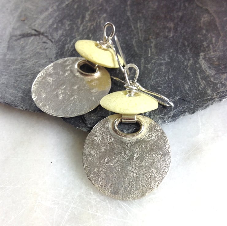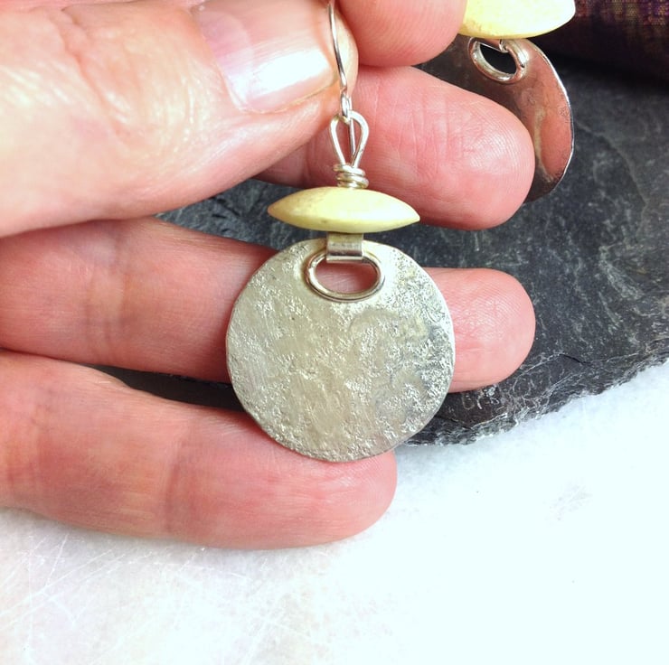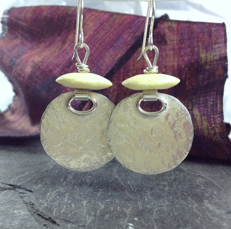 Silver circles have been beaten for texture and hinged to allow lots of movement.