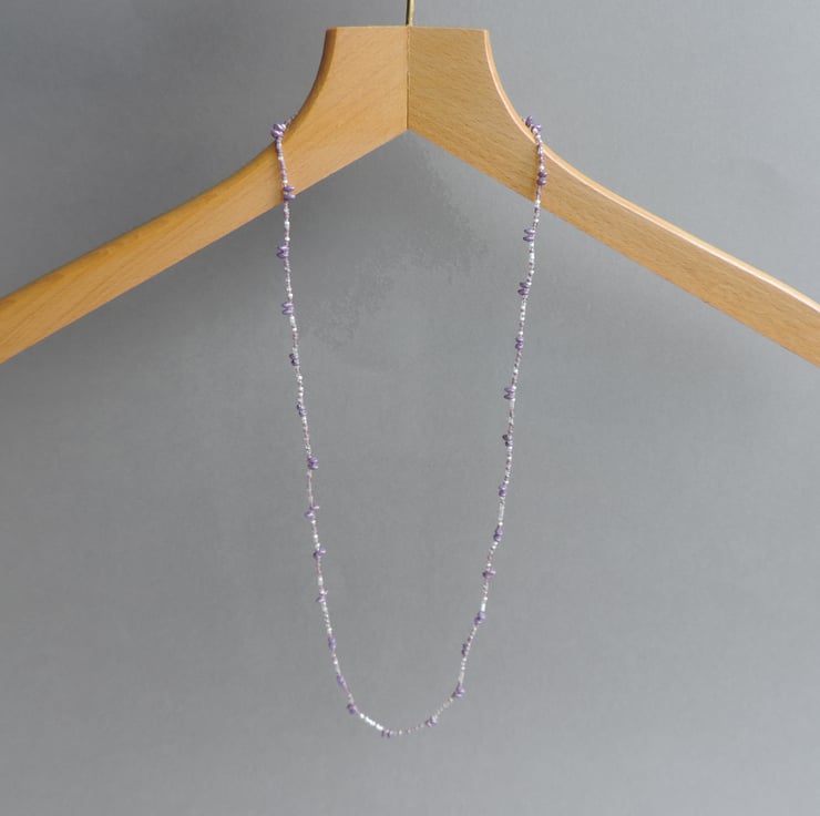 Long Lilac Necklace - Mauve Clasp Free Necklace - Violet Spiky Jewellery