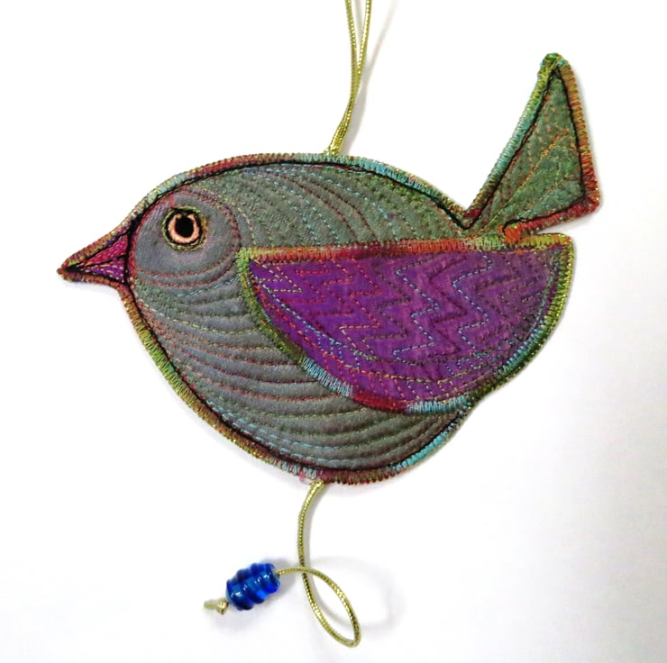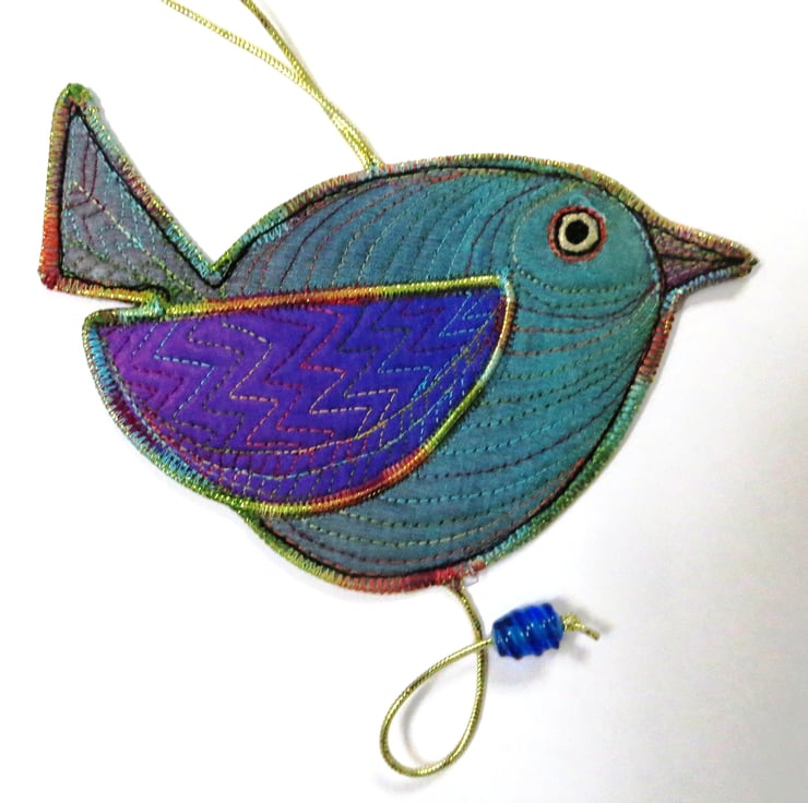 This is a multi layered fabric hanging decoration using silks and stitching to create an effect, it is multicoloured