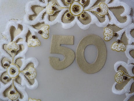 This is the perfect card for that special 50th golden wedding anniversary for that special couple. It would also suit a 50th birthday.