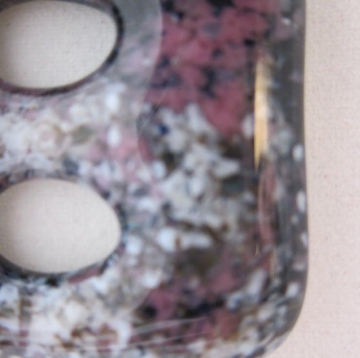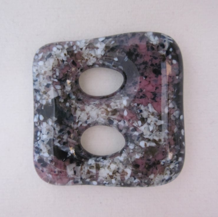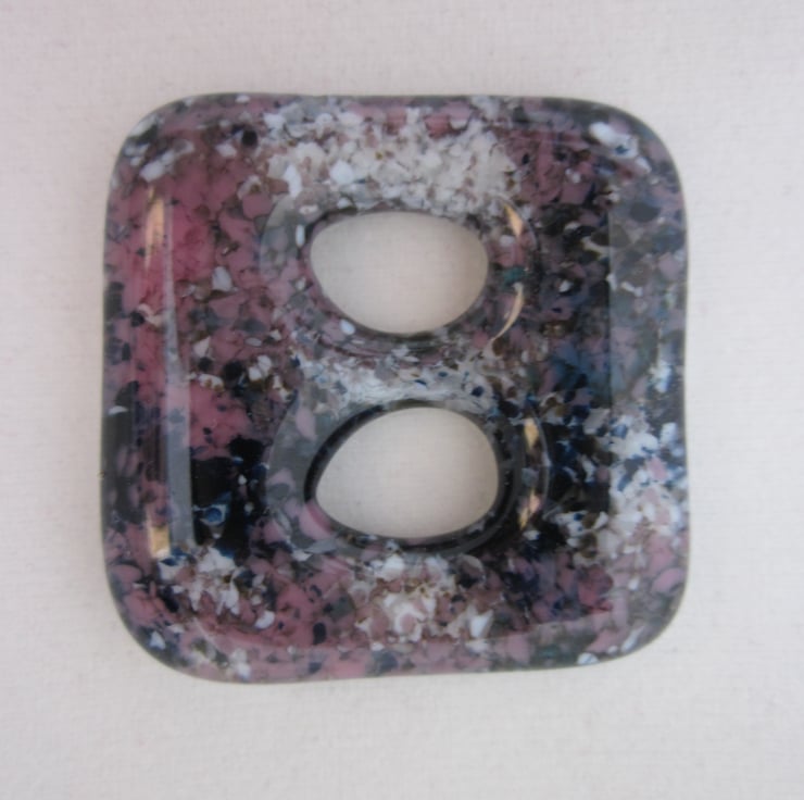 Each button is handmade and there will be some irregularities in shape due to this - do not expect perfectly matched holes! Frit casting is done by combining tiny pieces of glass, including clear, within a casting mould. This means that there may be variations of colour depth within the piece and this is normal.