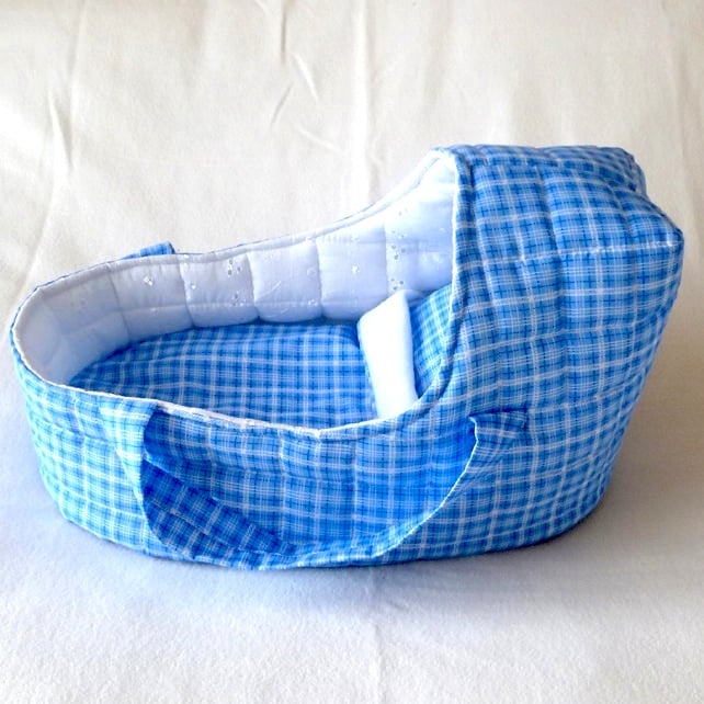 Dolls Carrycot in blue check