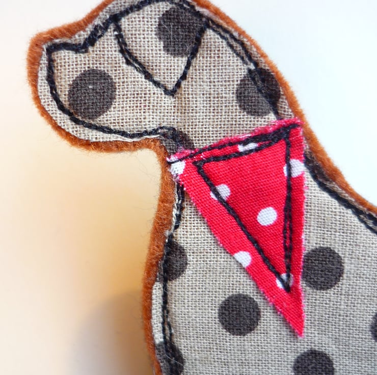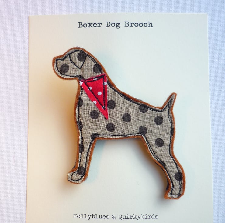 I have handmade this Boxer dog brooch using textiles and machine embroidery.