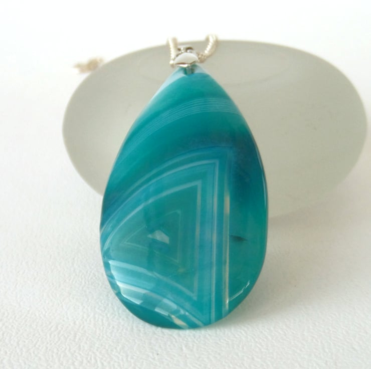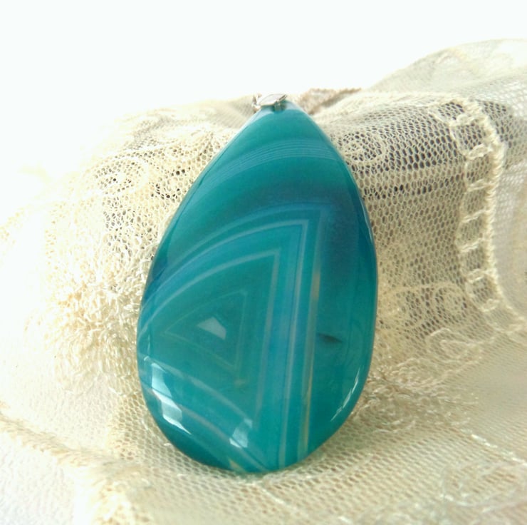 The agate is dyed in a beautiful turquoise colour and has unique markings within it - from very pale, almost transparent turquoise, through ever deepening shades to a lovely rich turquoise blue.