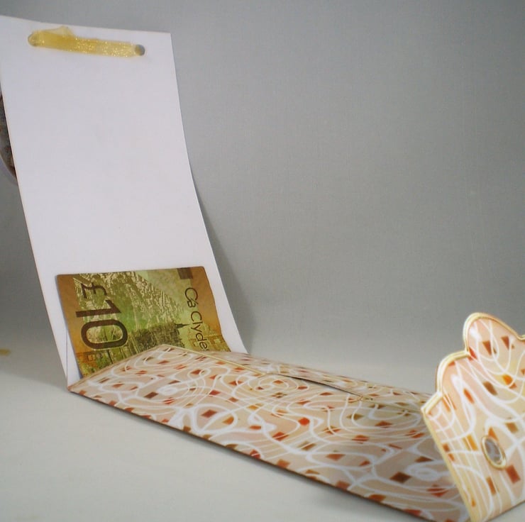 A handmade money gift wallet measuring approximately 175x95mm (6.75x3.5in).