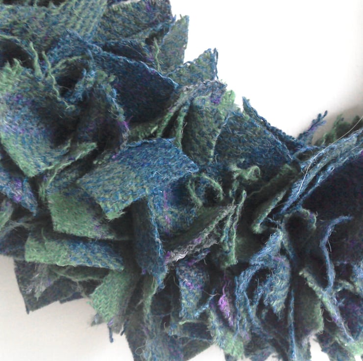 The wreath is made using a traditional rag rug making technique called proggy. The strips of Harris Tweed are woven into a hessian base which is then sewn onto the frame. I think that this makes the wreath feel very sturdy and substantial and helps the tweed form a nice thick pile. The navy velvet backing and the luxurious Harris Tweed make this a beautifully textured decorative wreath.