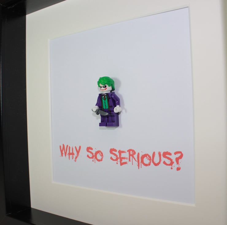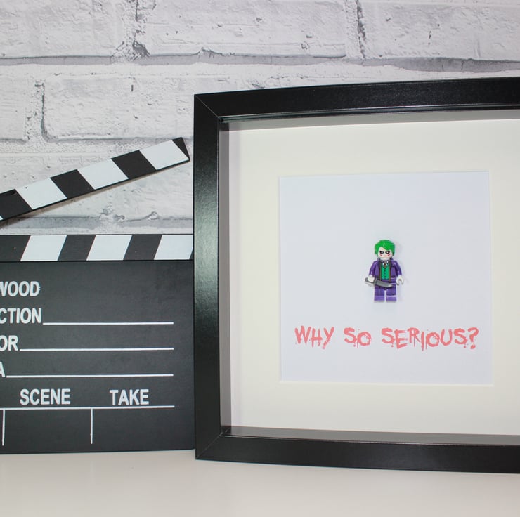 This deep box frame features one of the craziest movie and comic villains of all time but in minifig form... We present to you The Joker from The Dark Knight Trilogy - one of the most psychotic characters ever to come face to face with Batman.