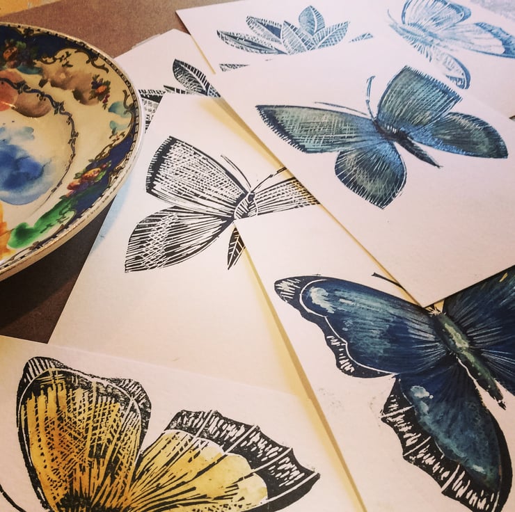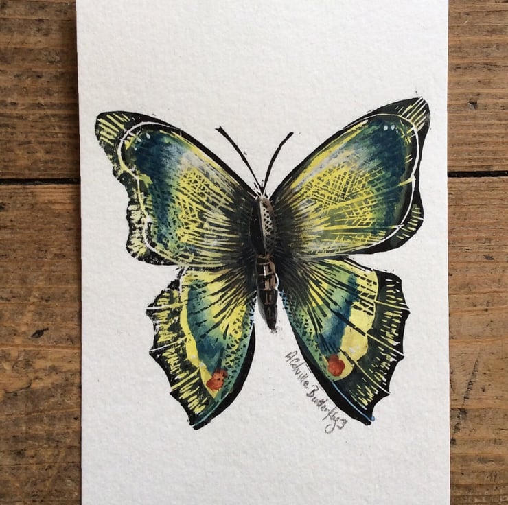 Butterfly hand painted watercolour and lino print Butterfly 3