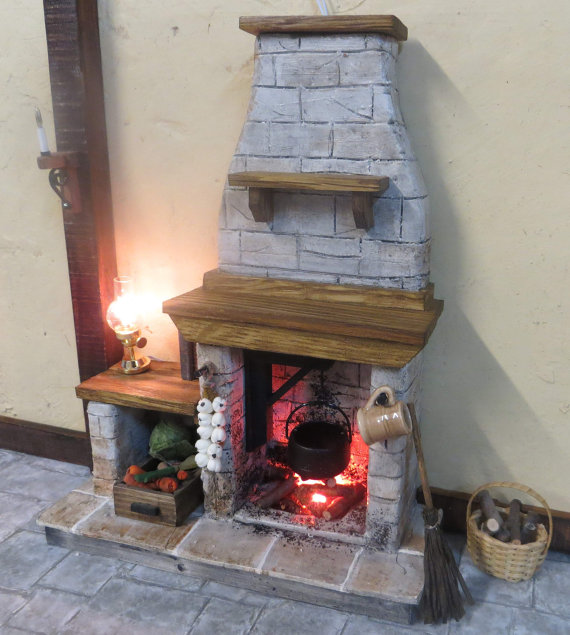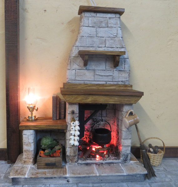 1 / 12th Scale Doll House Glowing Fireplace - Cottage / Tudor / Medieval