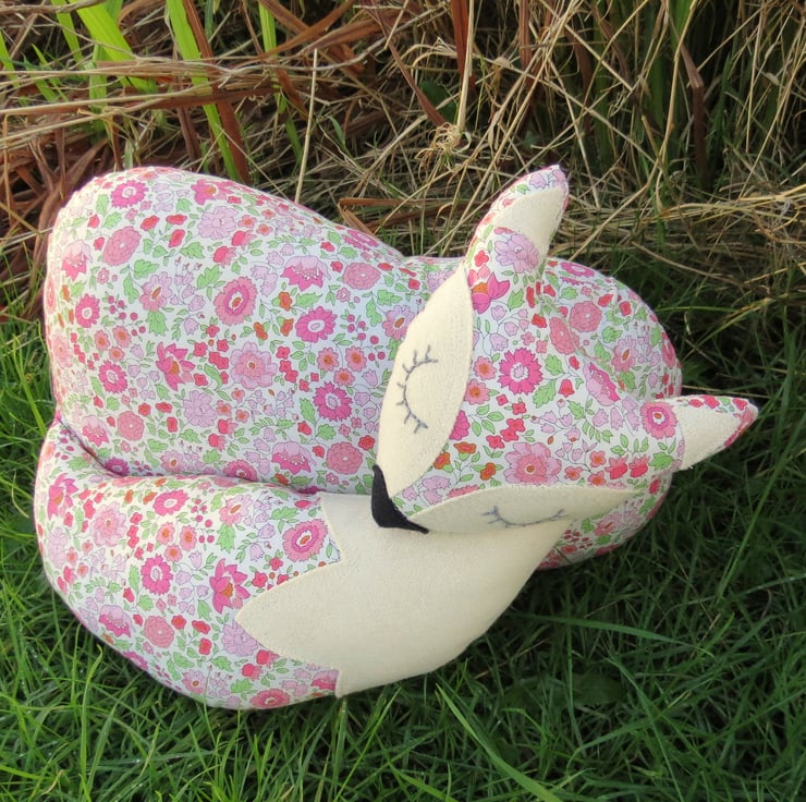 This is a sweet floral fox cushion.