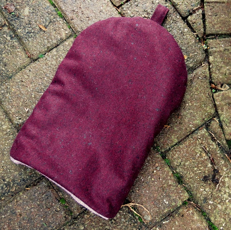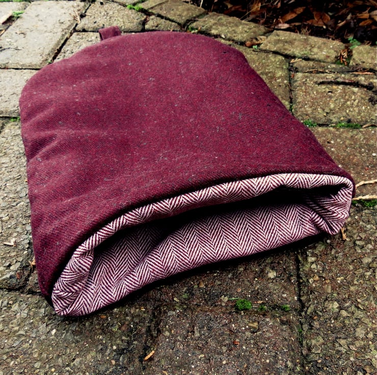 It is lined with a pink herringbone wool, with an additional layer of cotton wadding to keep coffee piping hot.