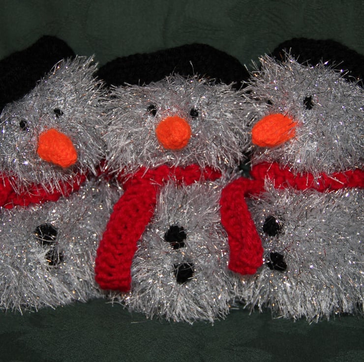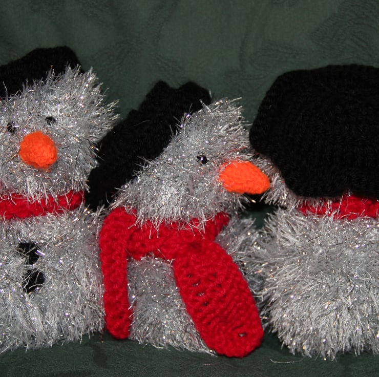 A really cute hand knitted silver snowman to add sparkle and brighten any winter home.