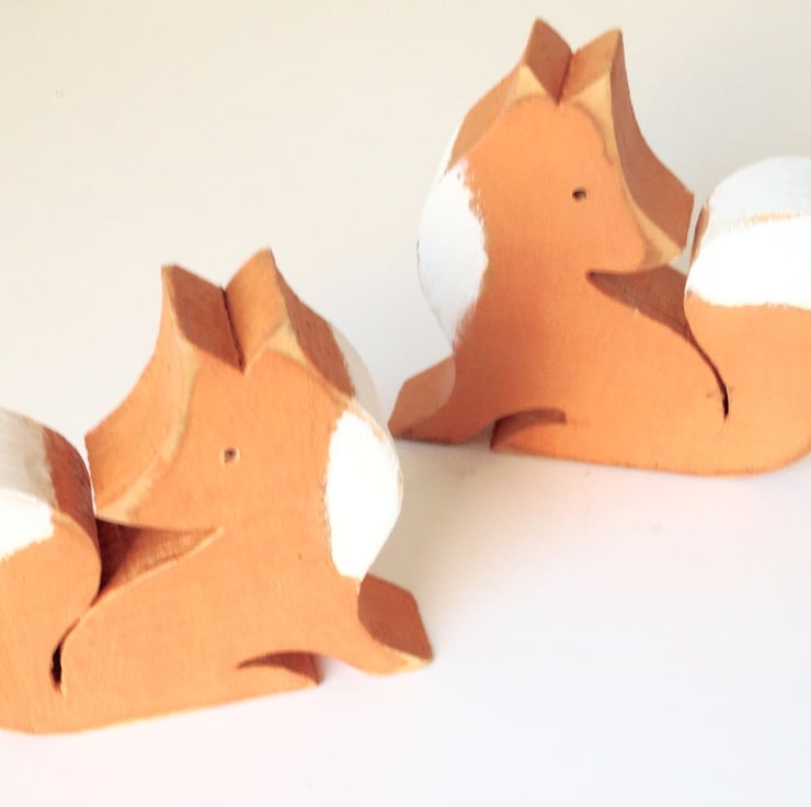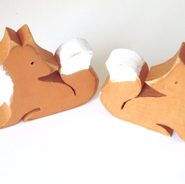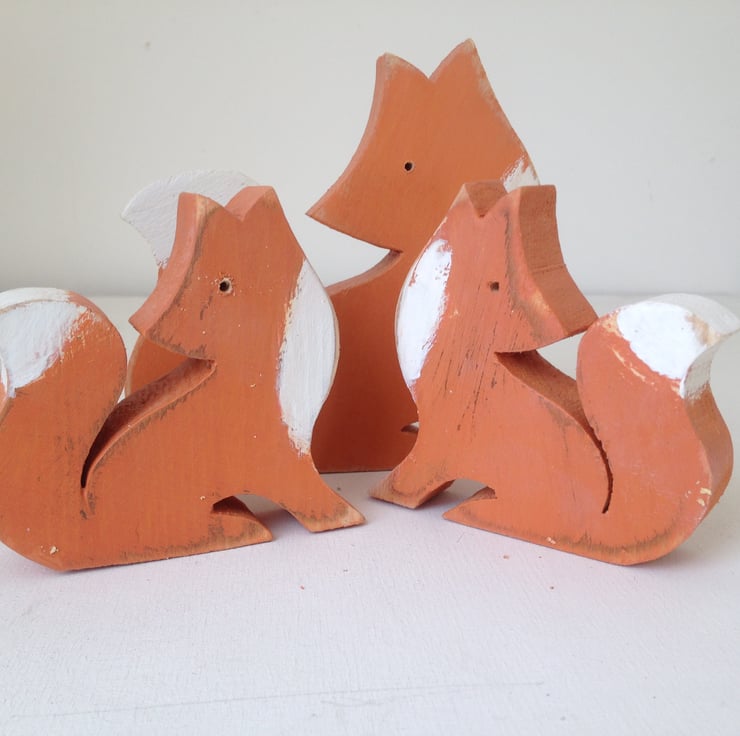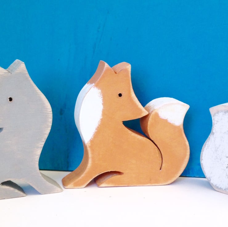 A little wooden fox has now been added to our little animal kingdom. The little fox is made using our hand drawn designs and each one is cut out individually on a bandsaw. I then sand and paint it using annie sloan chalk paints,matt varnish is then apply to protect its surface.