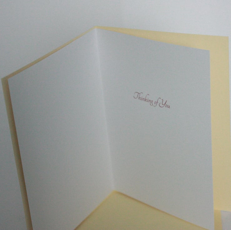 The card comes with a matching cream envelope and sealed in a cellophane wrapper.