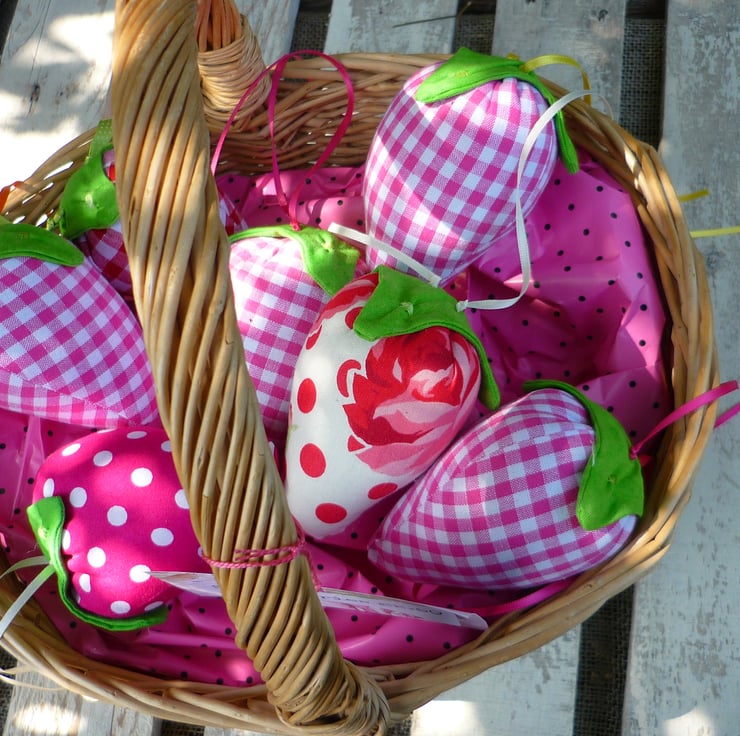 These delicious padded summer strawberries can be hung from a drawer handle or door and are the perfect finishing touch to a little girls bedroom.