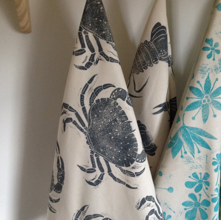 Block printed with Lino onto a cotton tea towel.
