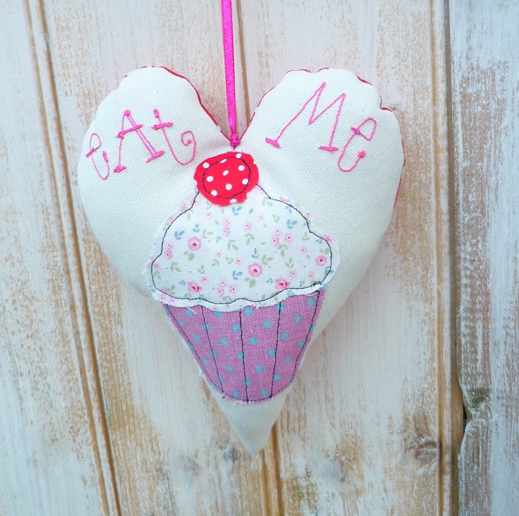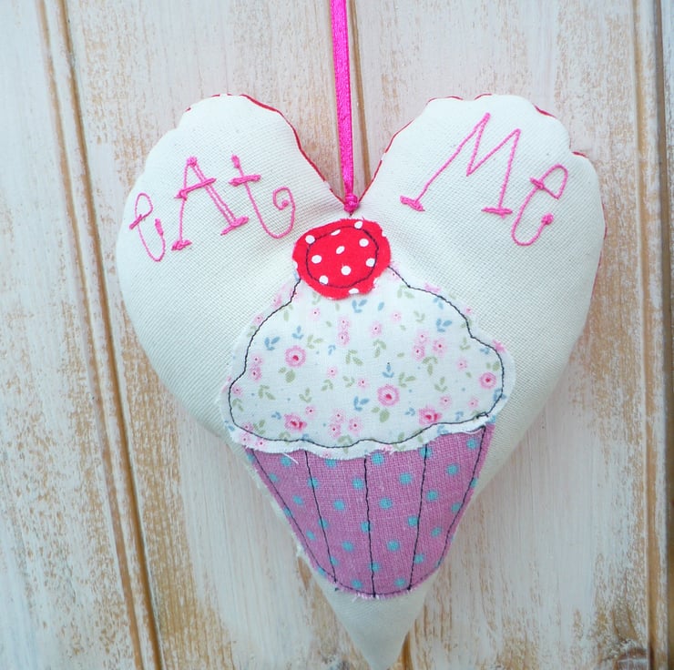 I have handmade this cupcake heart using raw edge applique and free motion embroidery.