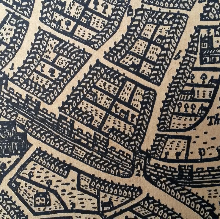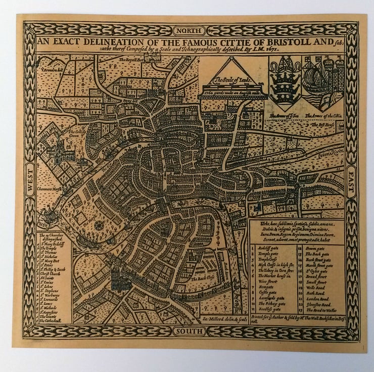 Say hello to Duncan's first lasercut product. It's a laser etched replica map of Bristol originally made by James Millerd in 1671.