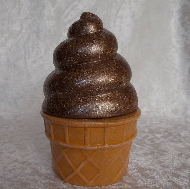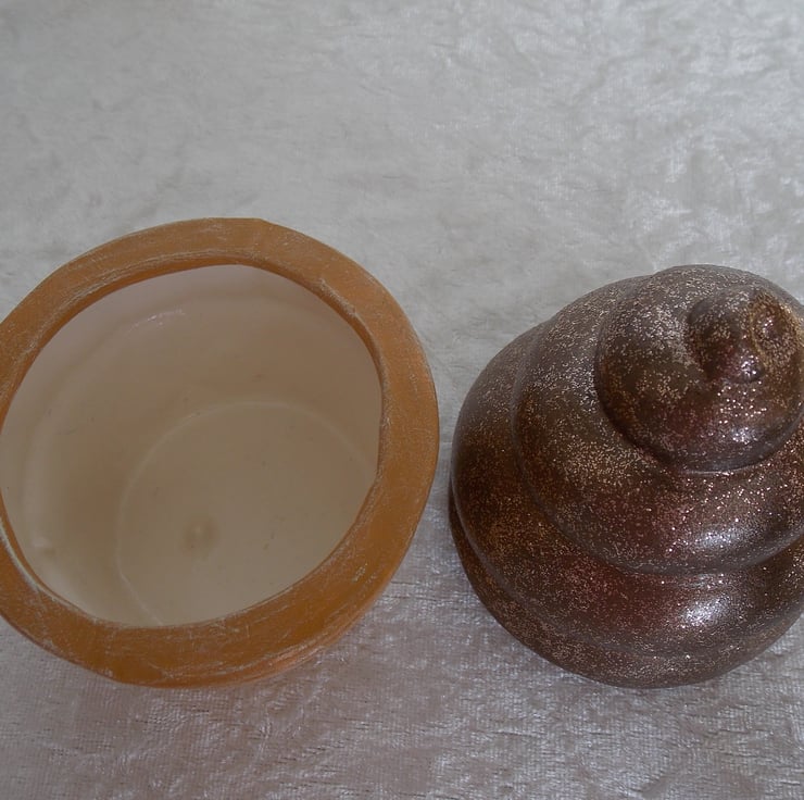 I have for sale a ceramic jewellery/trinket box, which was hand painted by myself. It is a glittery, chocolate whippy ice cream, sat on top of a cone. The ice cream part is the lid and the cone would hold any items. This would make a lovely addition to any child's bedroom shelf, or perhaps given as a gift.