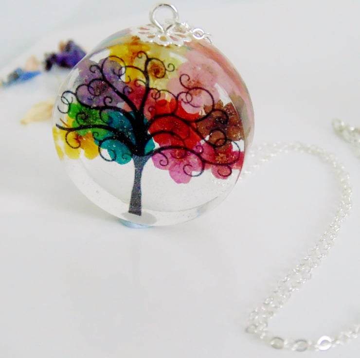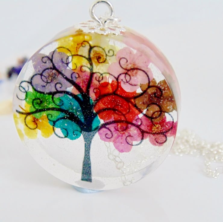 Rainbow Flower Tree Necklace, Tree Pendant, Gift for Mum, Botanical Jewellery