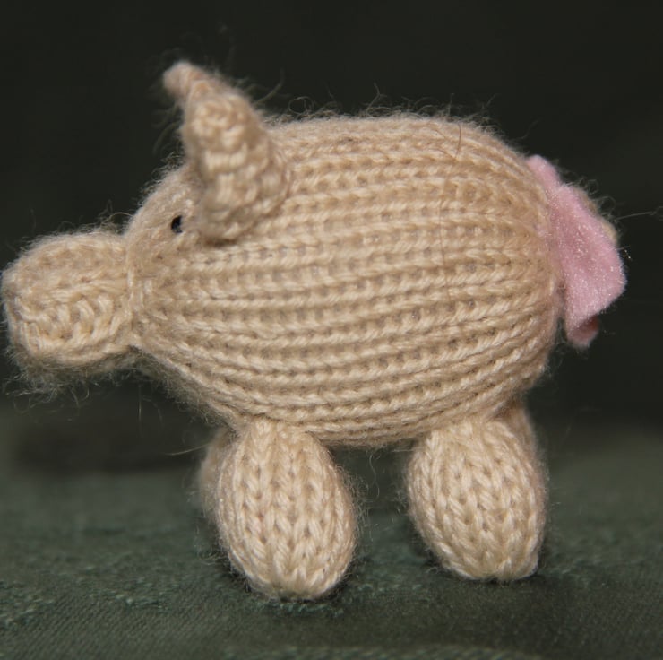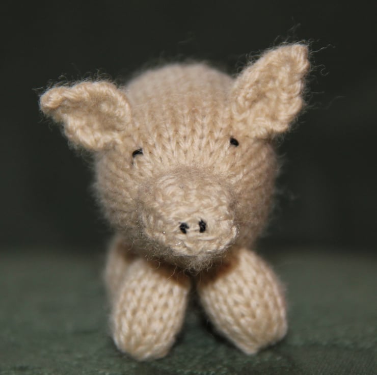 He stands just 4 cm tall and is just 5.5cm from snout to wiggly tail. This piggy has no sharp or loose parts, everything is stitched and because each one is knitted individually, your piglet will be unique.