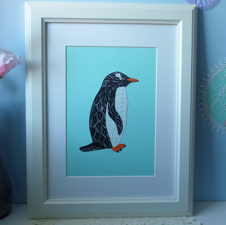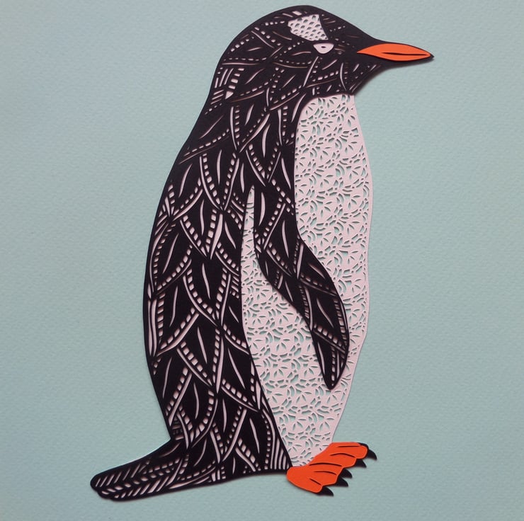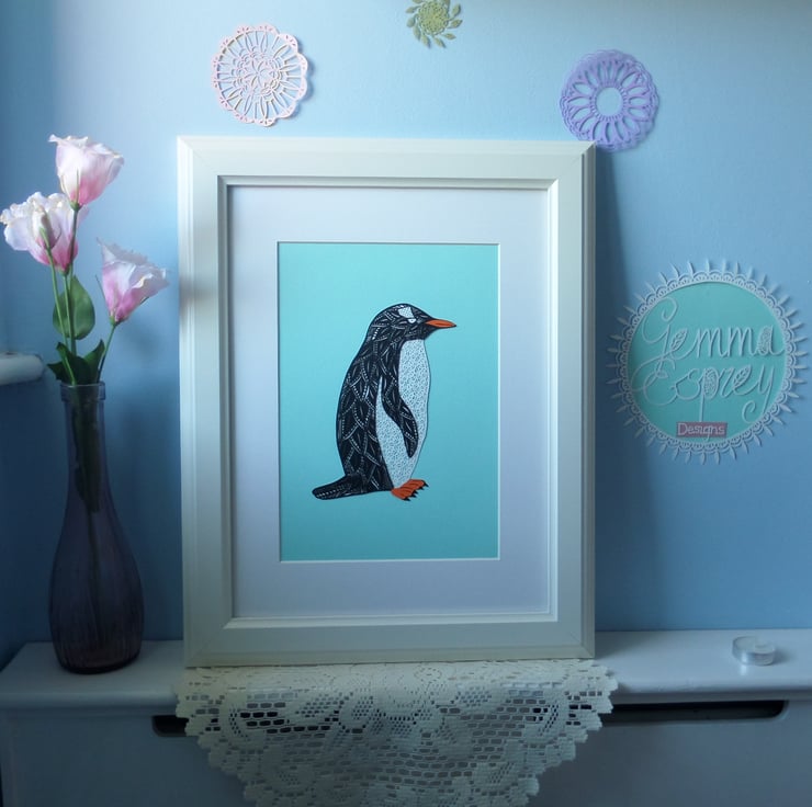 This is an A4 Giclee print of the original 'Gentoo Penguin' papercut which was designed and hand cut by Gemma Esprey.