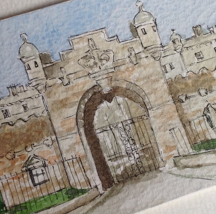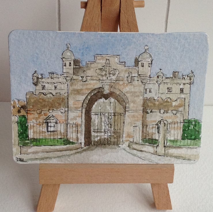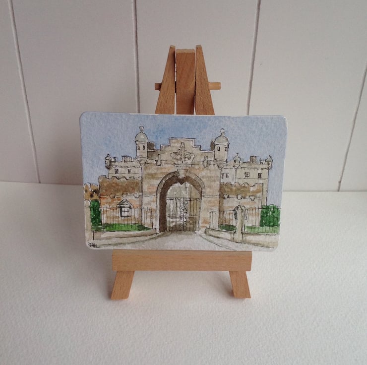 An original watercolour ACEO of the gatehouse at George Heriot's School in Edinburgh.