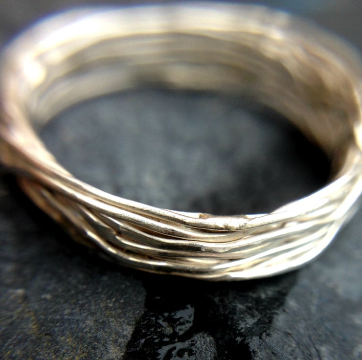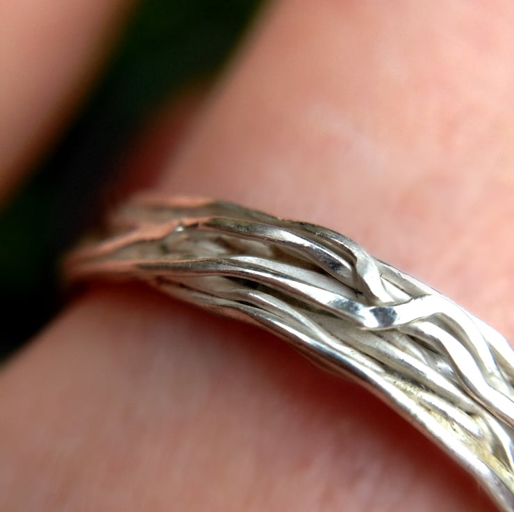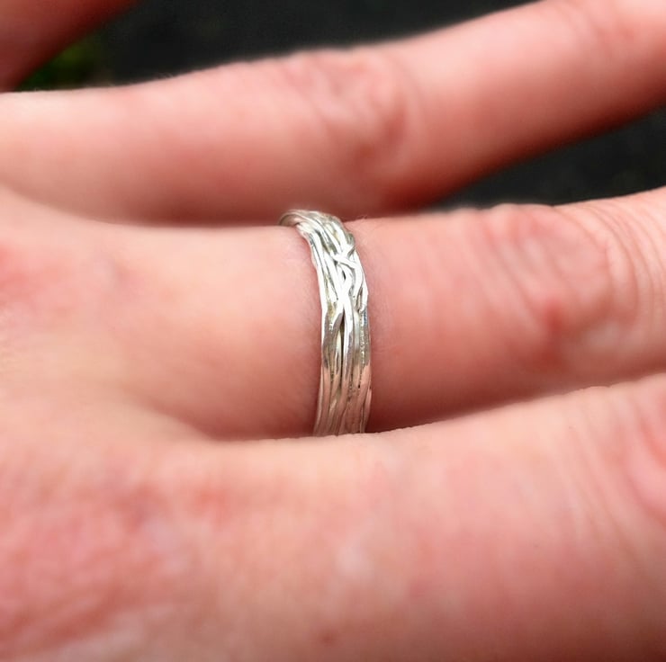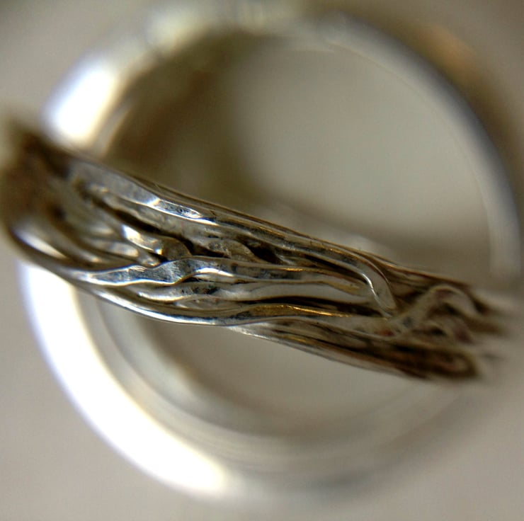 This piece is a sterling silver ring inspired by nature. Every piece is made to order and is truly unique. No two pieces have the same pattern or texture. This ring is suitable for both a man or a lady.