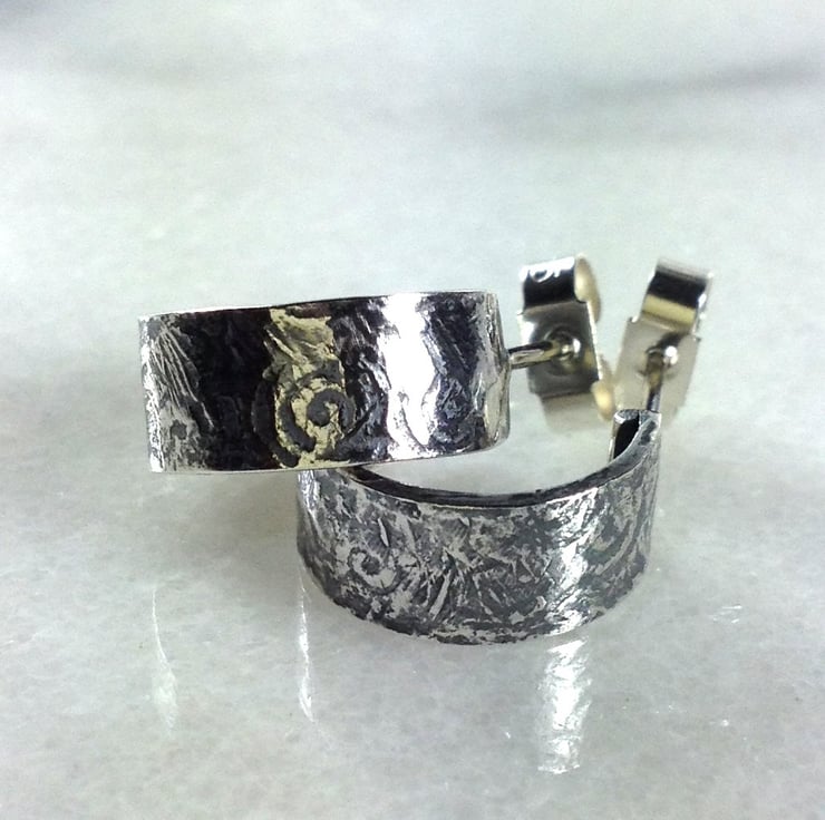 The silver has been oxidised then buffed and burnished, leaving the the pattern and texture more visible.