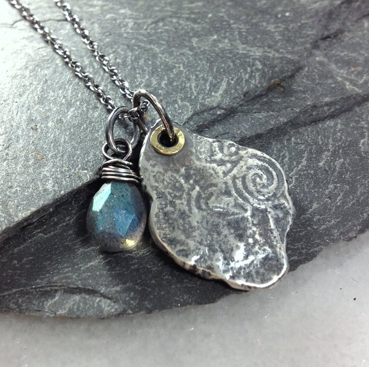 I have added an 18ct gold ring for colour and teamed it with the the flashiest hand faceted labradorite bead in my stash. It is a beauty - both sides are very eager to flash.