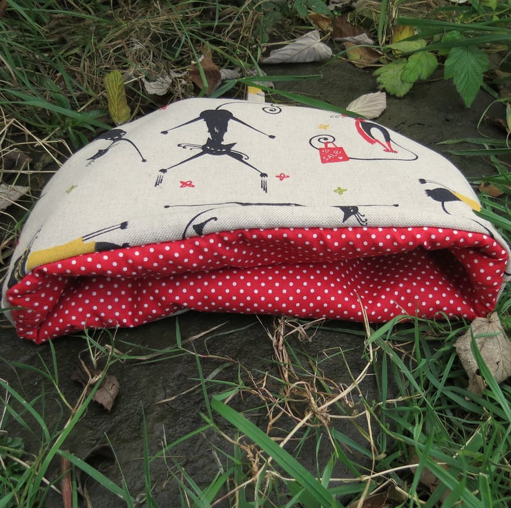 The fabric used is a linen look cotton with a crazy cats design.