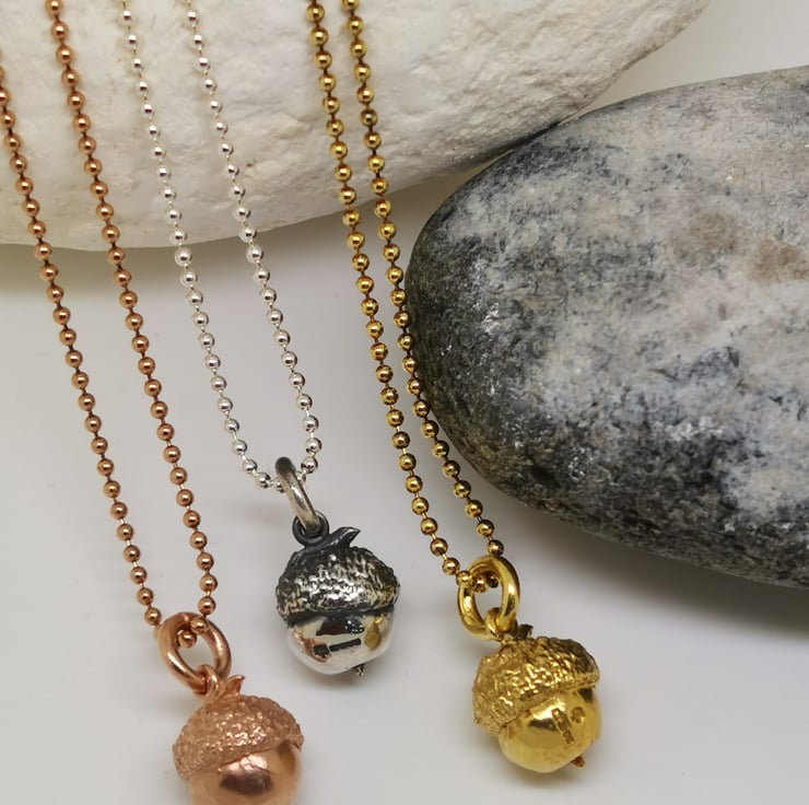 I'm constantly inspired by the word around me. We have a beautiful regal oak tree next to our house, it is forever dropping leaves and acorns in our garden. We often find baby trees sprouting. Last summer I searched for the perfect acorn, and this is it in silver form. Perfectly preserved forever. Its a symbol of strength. Out of tiny acorns, huge oaks grow!