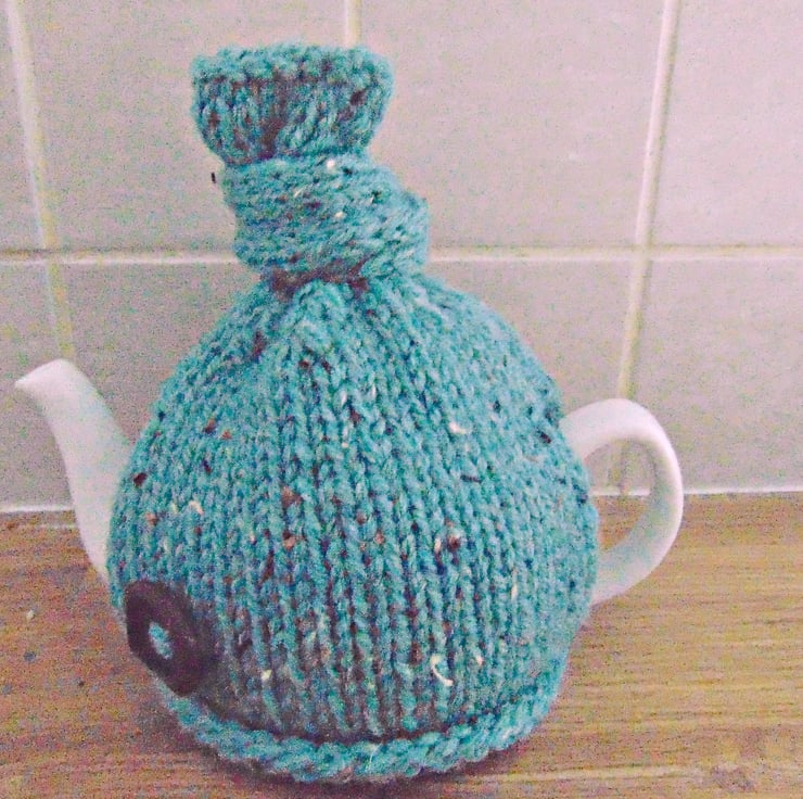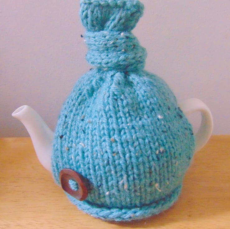 Made with wool/acrylic yarn in aqua tweed yarn with a subtle fleck