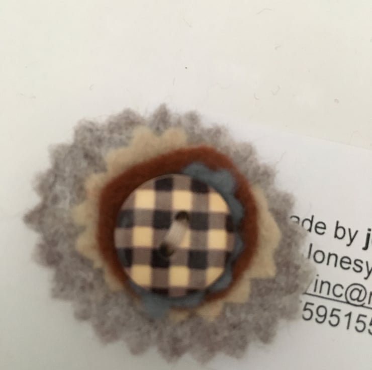Handcut and hand sewn button brooch/badge