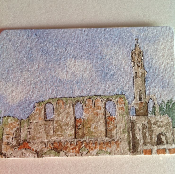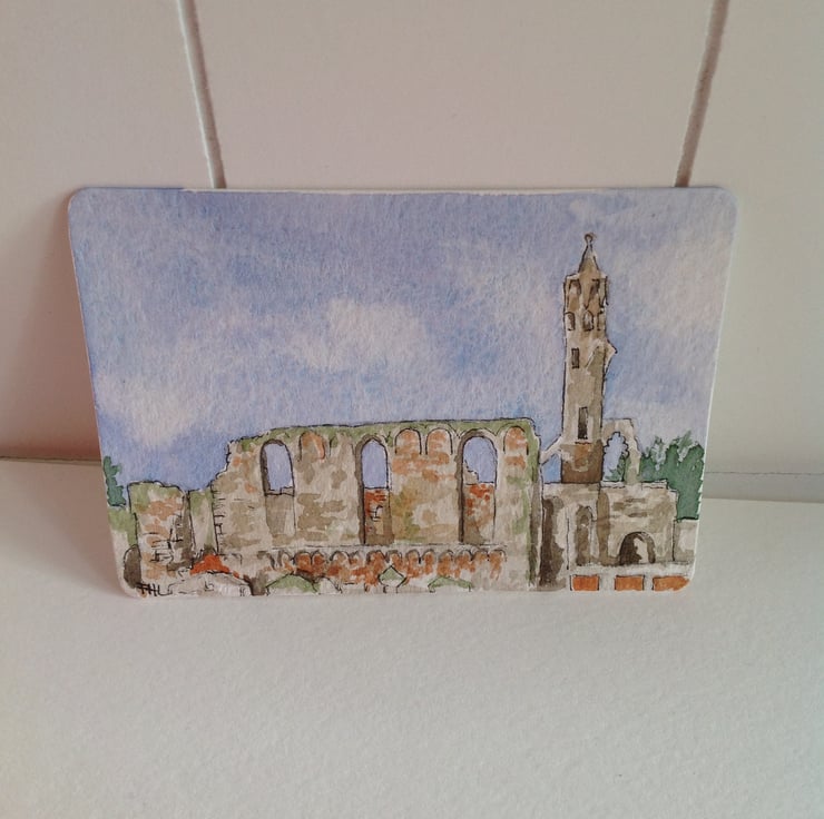 An original miniature watercolour of St. Andrews Cathedral in Fife, this little painting would be perfect to start an ACEO collection!