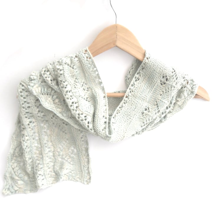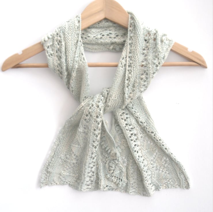 The pattern had been designed exclusively for this yarn and is available in kit form so you can knit your own - https://folksy.com/items/6854064-Flower-Crescent-Shawlette-Knitting-Kit-original-pattern-and-handdyed-Perran-Yarn