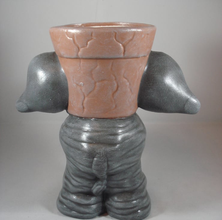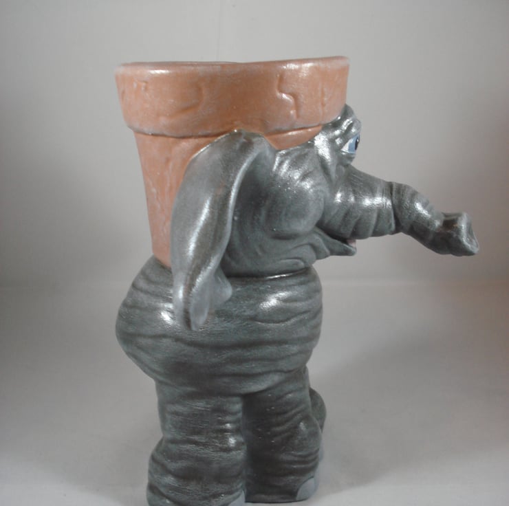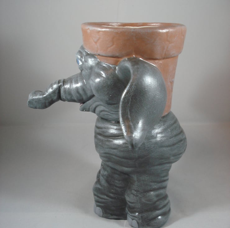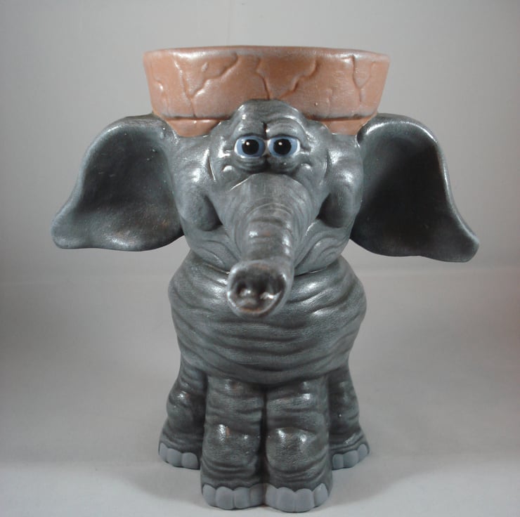 Ceramic Grey Novelty Elephant Animal Flower Herb Plant Pot Candle Container.