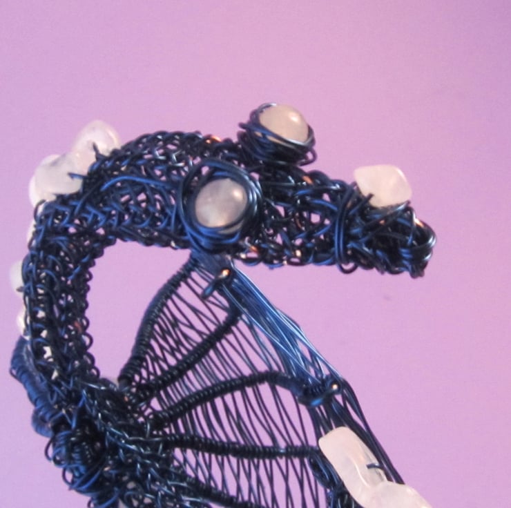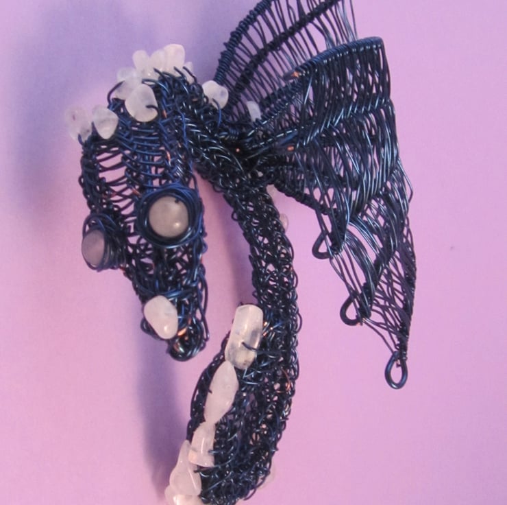 I love creating these dragons. This is an ice dragon, with the moonstone twinkling like ice. I imagine that this one comes from a frozen mountainside, and is clinging to your ear for warmth.