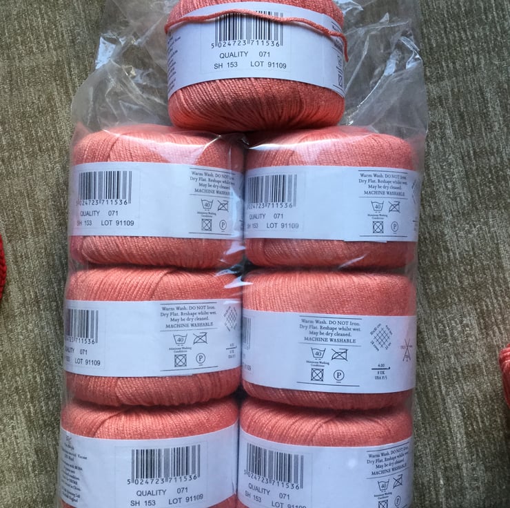 Listing is for 1 pack of 7 x 50g balls plus small oddments of Sirdar Snuggly Baby Bamboo DK yarn in a Pink I would describe as a Salmon Pink I think Sirdar called it Jellybean Shade No 153 but it is now a discontinued colour.