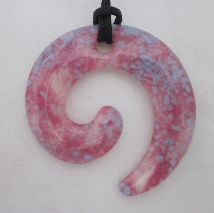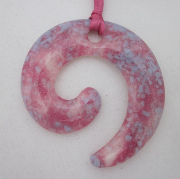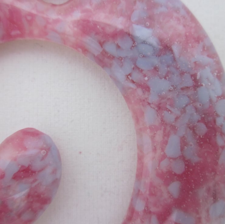 It is a stunning ornament, with delicate shades of pink and blue frit in a cream base.