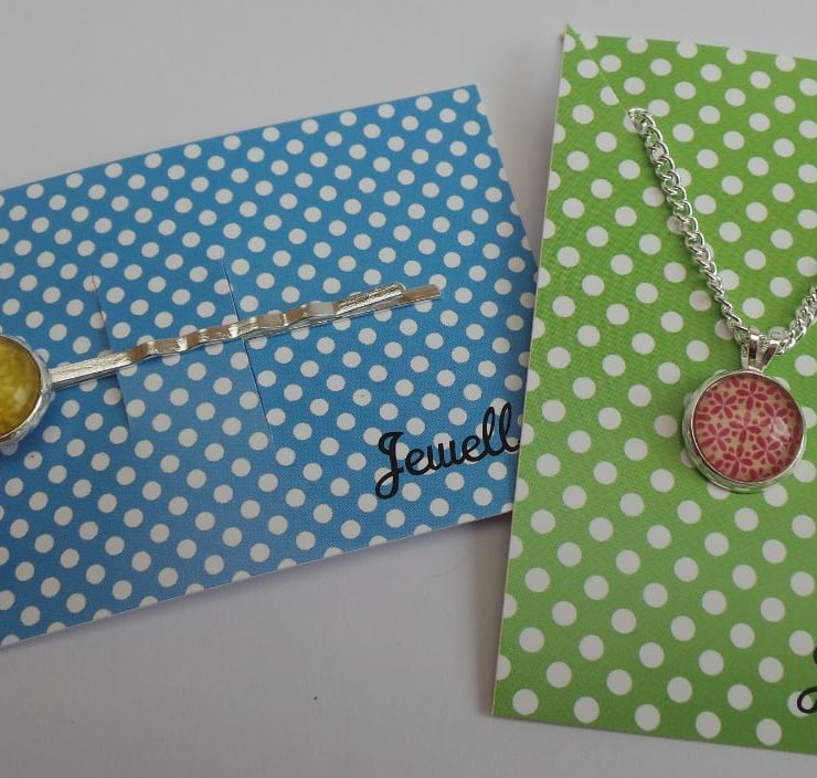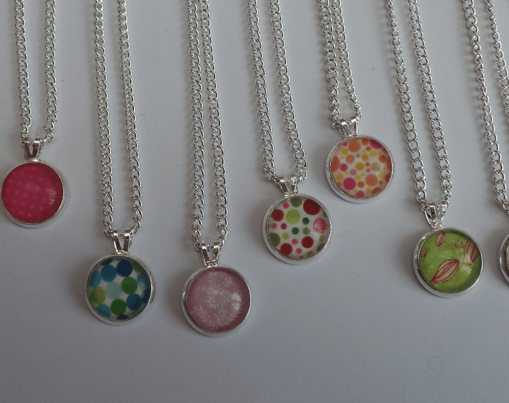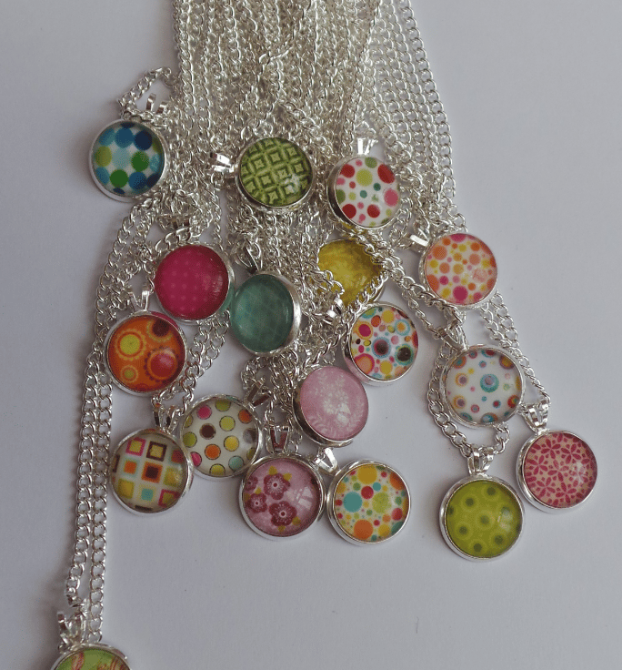 These lovely silver plated glass cabochon necklaces come in a variety of different designs - some of which are shown photographed