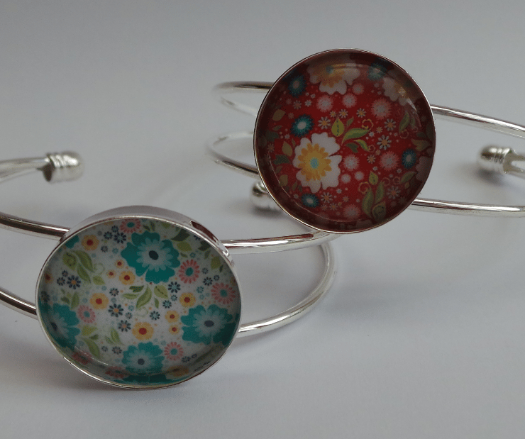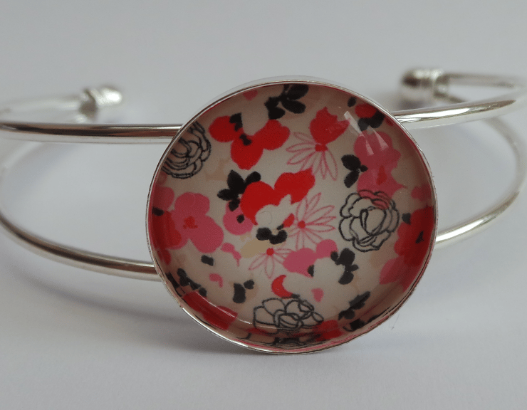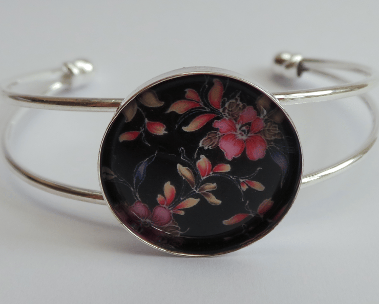 Silver Plated Glass Cabochon Bangle Flower Floral lots of different designs